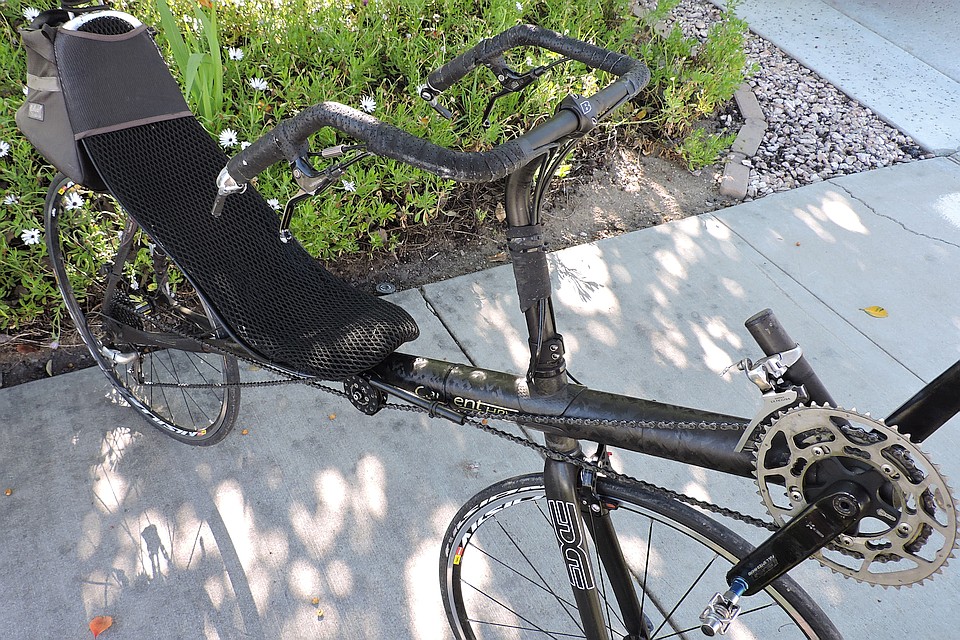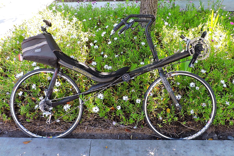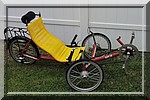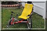 Greenspeed GT3: This classic Australian tadpole, much loved and cared for by our friend Dawn for many miles (until she replaced it with a new HPVelo Scorpion) is now up for sale. The trike is in very good condition. The trike has an easily removable seat, folding main tube and removable front wheels that allow it to become a very compact package for efficient transport or shipping. Its wide-range drivetrain, based upon a Schlumpf Mountain Drive with a Capreo rear hub, is well geared for the toughest hills you're ever likely to tackle. The trike includes a rear rack, rear fender, headrest and rearview mirrors. The fixed section of the boom is 12.5" long, measure from the centerline of the crossbeam. The trike rides on a full complement of Marathon Plus tires, with very minimal tread wear. This ready-to-ride GT3 is offered for sale for only $1550. It is available for viewing or road tests at my home in Oxnard (Ventura County, about 50 miles up the coast from LA), and we would very much prefer a local sale. It is available to trikers and recumbikers in other parts of the USA, but packing and shipping will be the buyer's responsibility.Contact: Wayne; Email: wayne@vcrr.org; Phone: 805-981-0339